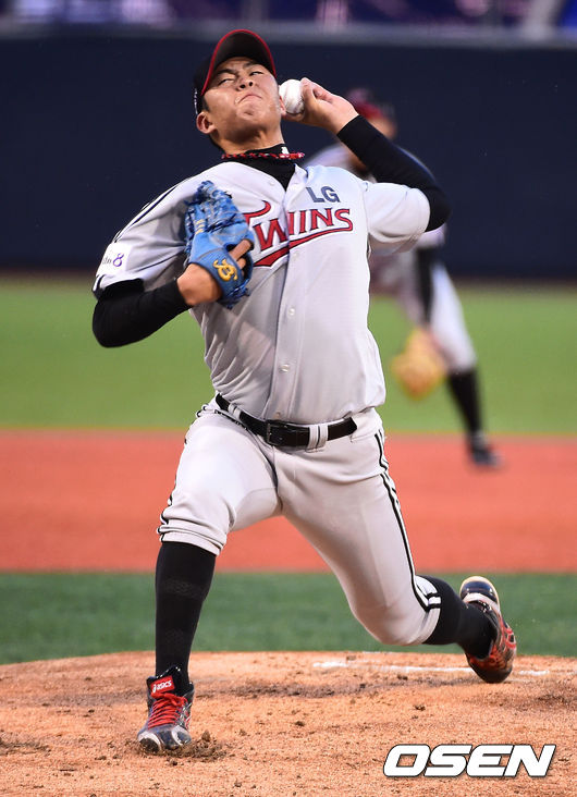 29일 오후 경남 마산구장에서 열린 '2014 한국야쿠르트 세븐 프로야구' NC 다이노스와 LG 트윈스의 경기,1회말 LG 선발투수 임지섭이 역투하고 있다.