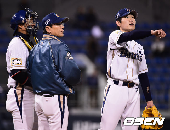 29일 오후 경남 마산구장에서 열린 '2014 한국야쿠르트 세븐 프로야구' NC 다이노스와 LG 트윈스의 경기,8회초 2사 NC 이재학이 교체되고 있다. 7⅔이닝 2실점 승리투수 조건을 갖췄다.