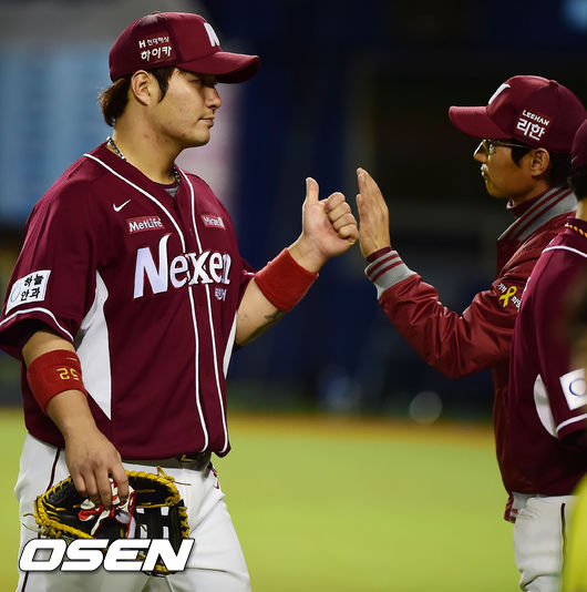 넥센 히어로즈가 두산 베어스를 꺾고 단독 선두를 고수했다.