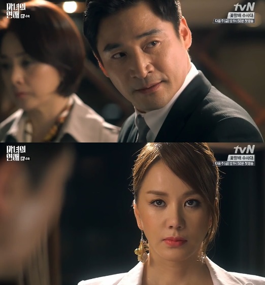 29일 방송된 tvN 월화드라마 '마녀의 연애' 4회에서는 유명 배우 김정도(전노민 분)의 출간 파티를 찾은 지연(엄정화 분)과 동하(박서준 분)의 모습이 그려졌다.
