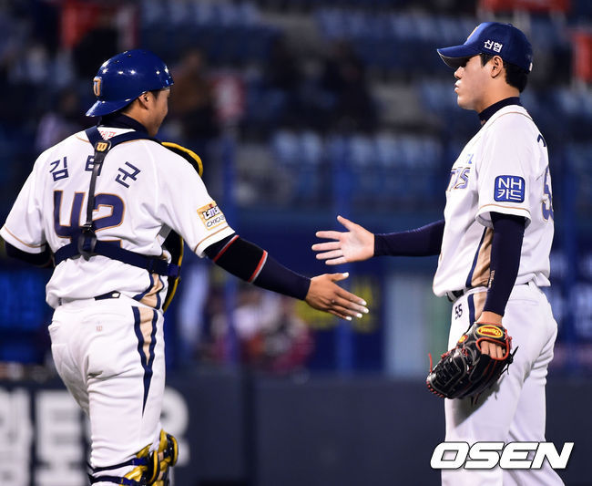NC는 29일 마산 LG전에서 LG를 3-2로 이겼다. 9회 2사 만루에 등판한 NC 마무리 김진성은 최경철을 풀카운트 승부 끝에 8구째 146km 직구를 던져 우익수 뜬공으로 막고 팀 승리를 지켰다.
