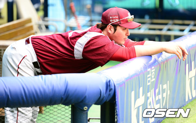 30일 오후 서울 잠실야구장에서 열린 ‘2014 한국야쿠르트 세븐 프로야구’ 두산 베어스와 넥센 히어로즈 경기에 앞서 넥센 박병호가 덕아웃에서 스트레칭을 하고 있다.
