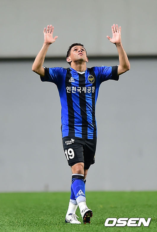 30일 오후 서울 월드컵 경기장에서 열린 ‘2014 하나은행 FA컵’ 32강전 FC 서울과 인천 유나이티드의 경기, 전반 인천 주앙 파울로가 동점골을 성공시킨 후 기뻐하고 있다.