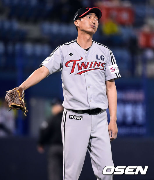 30일 오후 경남 마산구장에서 열린 '2014 한국야쿠르트 세븐 프로야구' NC 다이노스와 LG 트윈스의 경기,8회말 티포드에 이어 마운드를 이어 받은 LG 이상열 투수가 2루타 NC 이종욱에 이어 나성범에게 볼넷을 허용한 후 아쉬워하고 있다.