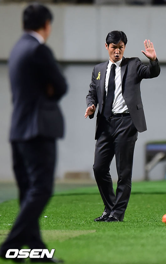 30일 오후 서울 월드컵 경기장에서 열린 ‘2014 하나은행 FA컵’ 32강전 FC 서울과 인천 유나이티드의 경기, 연장 전반 서울 최용수 감독이 지시를 내리고 있다.