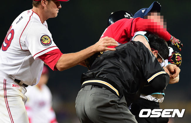 30일 광주 KIA 챔피언스필드에서 열린 KIA와 SK경기 도중 심판 판정에 불만을 품은 한 관중이 그라운드에 난입해 심판을 공격하는 사태가 발생했다.