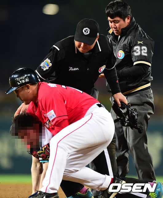 관중은 박근영 1루심쪽으로 달려가 뒤에서 공격했다. 투구를 준비하는 단계에서 그라운드에서는 아무로 눈치채지 못햇다. 결국 두 사람은 엉킨채로 그라운드에 쓰러졌다. 곧바로 KIA 1루수 브렛 필과 SK 코치와 보안요원들이 달려가 제지했고 관중을 떼어냈다.