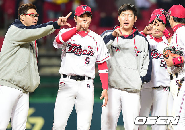 승리투수가 된 송은범을 비롯한 KIA 선수들이 승리의 인사를 나누고 있다./dreamer@osen.co.kr