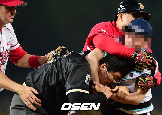 30일 광주 KIA 챔피언스필드에서 열린 KIA와 SK경기 도중 심판 판정에 불만을 품은 한 관중이 그라운드에 난입해 심판을 공격하는 사태가 발생했다.