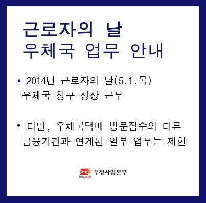 은행은 근로자의 날에 휴무를 시행하지만 우체국은 부분적인 업무에 들어간다.