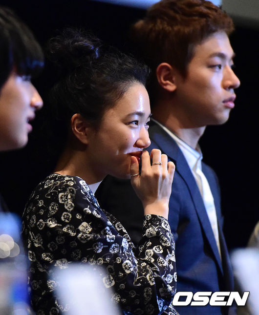 배우 손수현이 취재진의 질문을 듣고 있다.