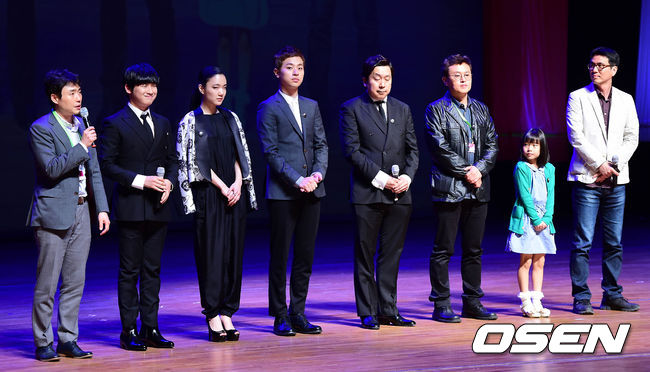 개막작 '신촌좀비만화' 감독과 배우들이 인사를 하고 있다.