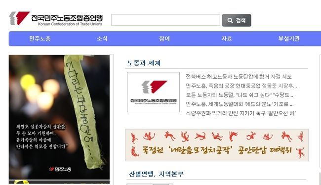 민주노총 홈페이지캡쳐.