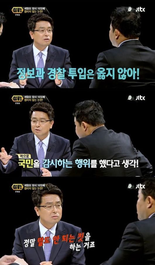 한편 이날 '썰전'에는 김구라, 강용석, 이철희가 세월호 참사에 대한 의혹에 대해 이야기를 나누는 모습이 담겼다.