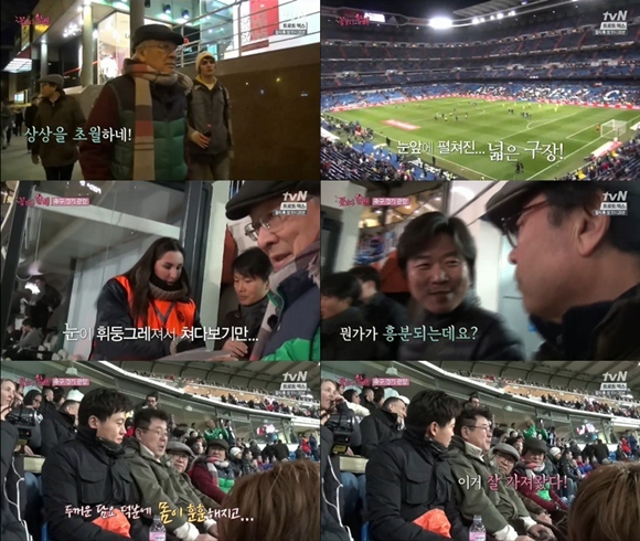 '꽃할배'들과 이서진이 스페인 축구팀 레알 마드리드의 경기를 보기 위해 베르나베우 구장을 찾았다.