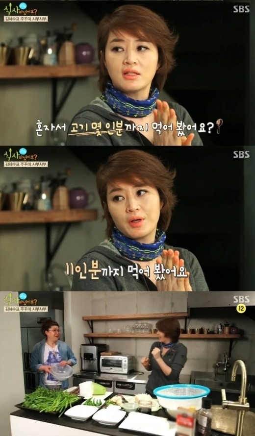 그러자 이영자는 "혼자서 고기 몇 인분까지 먹어 봤느냐"고 물었고, 김혜수는 "고기를 11인분까지 먹어 봤다"고 답해 이영자를 깜짝 놀라게 했다.