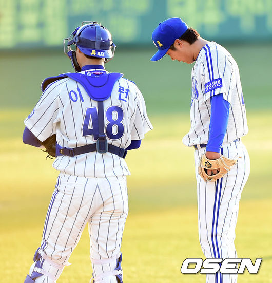 5회초 1사 1루에서 삼성 배영수가 마운드를 내려가며 아쉬운 표정을 짓고 있다.