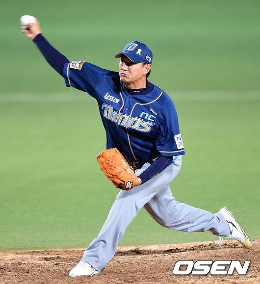 9회말 NC 손민한이 힘차게 공을 던지고 있다.
