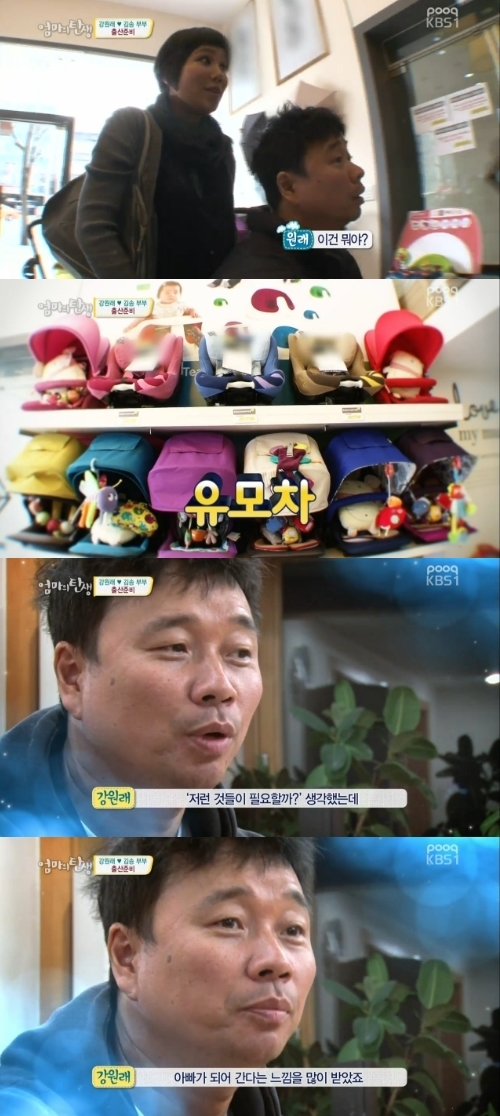 강원래는 4일 오전 방송된 KBS 1TV 시사교양 프로그램 '엄마의 탄생'에서 아내 김송과 함께 출산준비를 위해 육아용품 쇼핑에 나섰다. 이들 부부의 눈에 가장 먼저 들어온 제품은 유모차와 카시트였다.