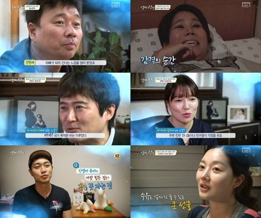 이날 강원래-김송 부부는 점점 부모가 되어간다는 느낌을 몸소 경험하며 곧 세상밖으로 나올 선물이(태명)을 위한 본격적인 준비에 나섰다. 철없는 예비아빠 강원래는 육아용품을 쇼핑하면서 “사실 저런 것들이 필요할까라는 생각을 많이 했었는데 ‘아, 이거구나’ 생각했다. 이제 아빠가 되어간다는 느낌을 많이 받는다”고 설명했다. 김송은 초음파를 통해 만난 선물이를 보고 감격스러워했다. 강원래-김송 부부는 예비부부라면 누구나 공감할 내용을 솔직하게 담아냈다.