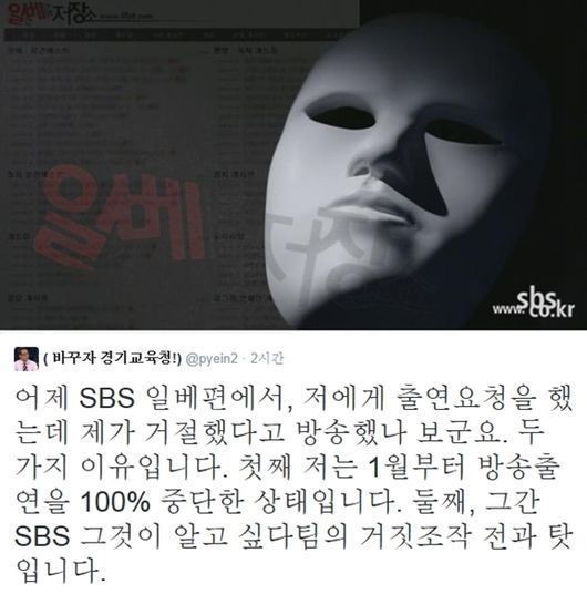 앞서 변희재는 지난 3일 방송된 '그것이 알고싶다-일베편'을 보고 4일 오전 자신의 트위터에 "어제 SBS '그것이 알고싶다-일베편'에서 저에게 출연 요청을 했는데 제가 거절했다고 방송했나 보군요. 두가지 이유입니다. 첫째, 저는 1월부터 방송 출연을 100% 중단한 상태입니다. 둘째, 그간 SBS '그것이 알고싶다' 팀의 거짓 조작 전과 탓입니다"라고 주장했다.