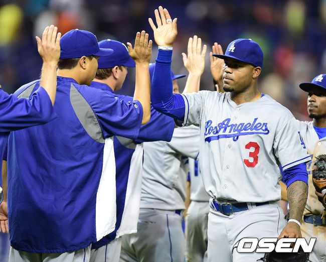 다저스는 말린스 파크에서 벌어진 '2014 메이저리그' 마이애미전에서 9-7로 승리를 거뒀다. 이날 경기로 다저스는 시즌 18승 13패를 기록하며 내셔널리그 서부지구 선두 샌프란시스코 자이언츠 추격에 나섰다. 마이애미는 15승 15패 승률 5할로 내셔널리그 동부지구 4위 자리에 머물렀다. / baik@osen.co.kr