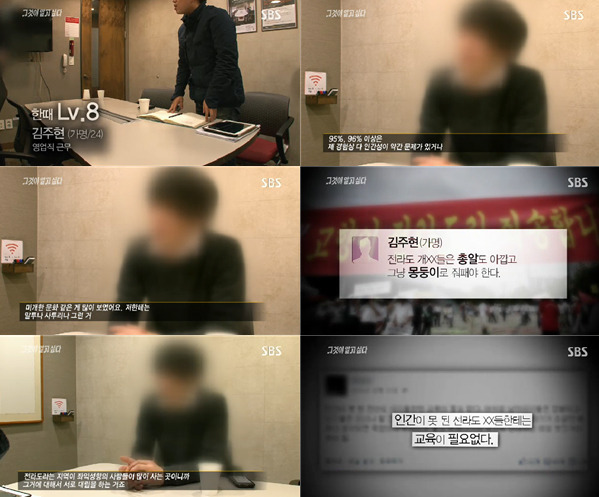 이날 방송에서도 논란이 될 만한 내용이 소개됐다. 그것이 알고싶다의 인터뷰에 응한 김주현(24, 가명)씨는 전라도를 장난감으로 생각한다고 밝혔다. 그는 "미개한 문화 같은 것이 많이 보였다. 내게는 말투나 사투리가 그런 것이다"고 말했다. 생각뿐만이 아니다. 그는 일간베스트 게시판에 "전라도 개XX들은 총알도 아깝고 그냥 몽둥이로 줘패야 한다", "인간이 못 된 전라도 XX한테는 교육이 필요없다" 등의 글을 올리기도 했다.