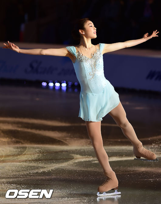 4일 오후 서울 올림픽공원 체조경기장 특설 아이스링크에서 열린 김연아의 아이스쇼 '삼성 갤럭시★스마트에어컨 올댓스케이트 2014', 김연아가 겨울왕국의 주제가 렛잇고에 맞춰서 오프닝 공연을 펼치고 있다.