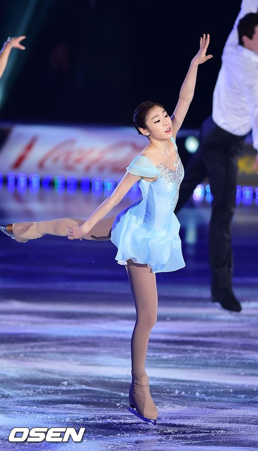 4일 오후 서울 올림픽공원 체조경기장 특설 아이스링크에서 열린 김연아의 아이스쇼 '삼성 갤럭시★스마트에어컨 올댓스케이트 2014', 김연아가 겨울왕국의 주제가 렛잇고에 맞춰서 오프닝 공연을 펼치고 있다.