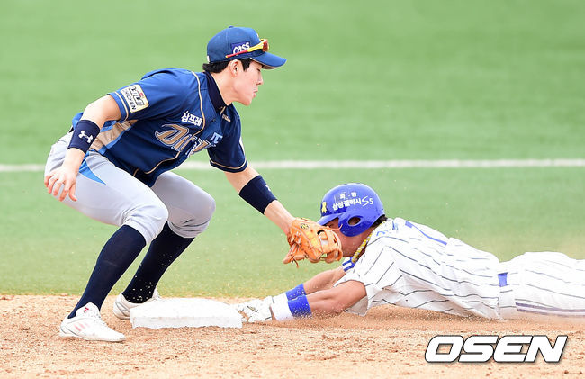 7회말 1사 1루 삼성 1루주자 김상수가 도루에 성공하고 있다.