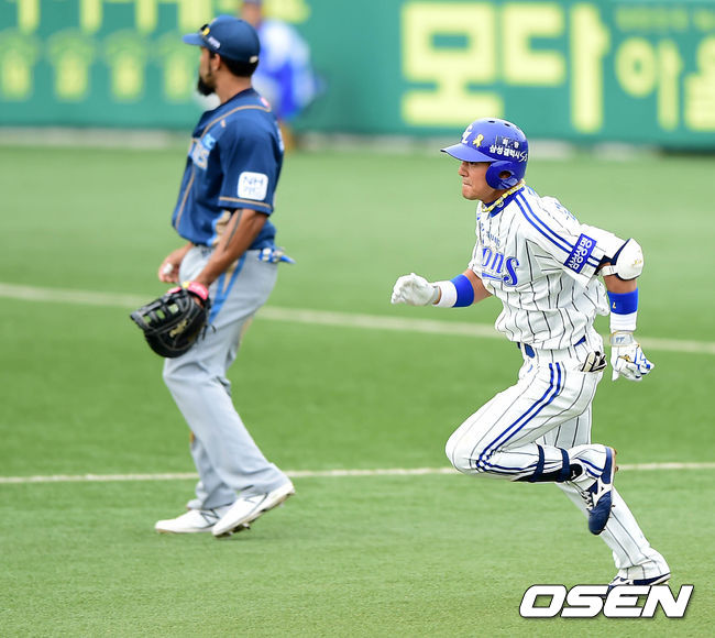 8회말 2사 2루에서 삼성 김상수가 우월 적시2루타를 치고 그라운드를 달리고 있다.