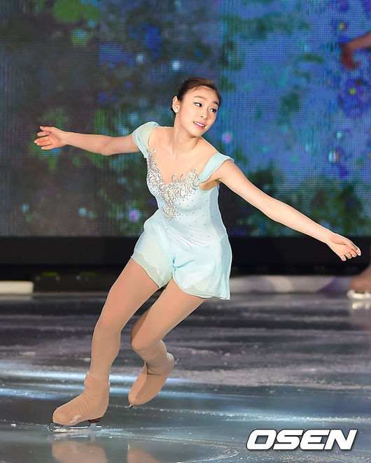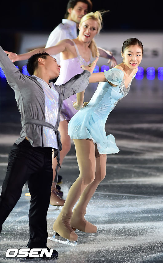 ‘겨울왕국’의 주인공 엘사에 가장 어울리는 피겨 스타로 선정된 바 있는 김연아의 모습은 그야말로 '엘사' 그 자체였다. 아이스블루의 드레스에 비즈를 곁들인 김연아는 'Let it go'의 멜로디에 맞춰 무대에 모습을 드러냈다. 스케이터들 사이로 우아하게 미끄러져 나온 김연아는 우아한 연기로 군무를 이끌며 자신의 아이스쇼에 함께해준 팬들을 향한 사랑의 메시지를 보냈다.