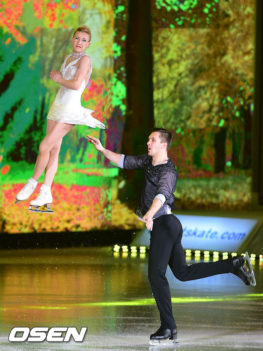 4일 오후 서울 올림픽공원 체조경기장 특설 아이스링크에서 열린 김연아의 아이스쇼 '삼성 갤럭시★스마트에어컨 올댓스케이트 2014', 타티아나 볼로소자-막심 트란코프가 화려한 무대를 선보이고 있다.