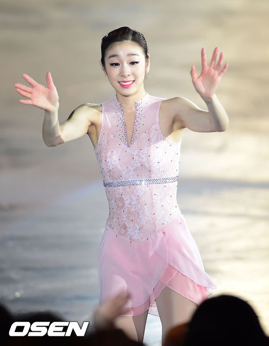 4일 오후 서울 올림픽공원 체조경기장 특설 아이스링크에서 열린 김연아의 아이스쇼 '삼성 갤럭시★스마트에어컨 올댓스케이트 2014', 김연아가 커튼콜을 하며 팬들에게 인사를 하고 있다.