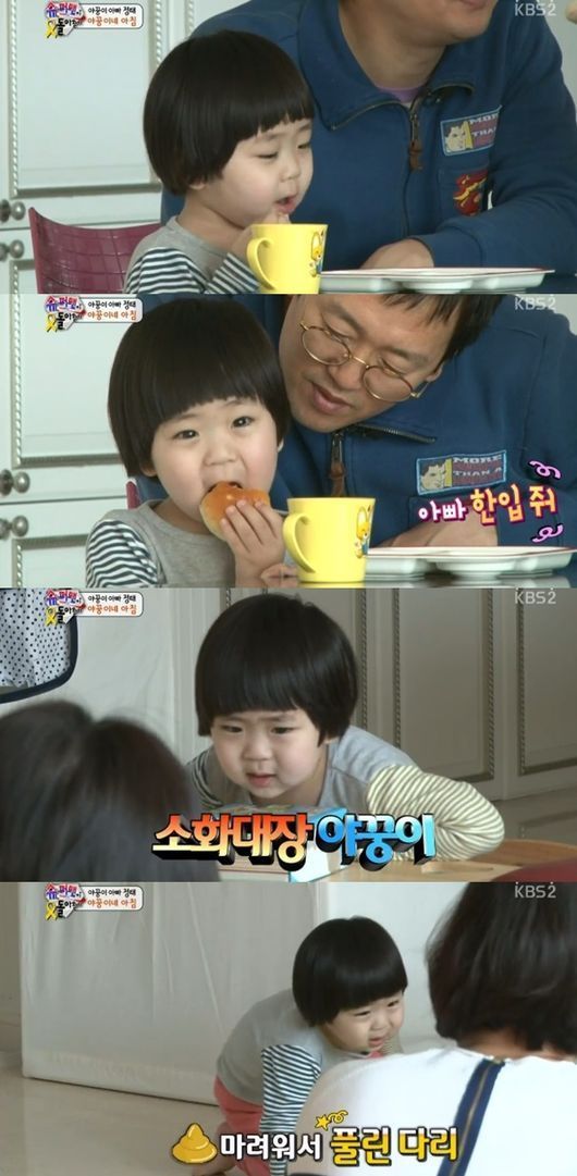 정세윤은 아빠가 출연했던 드라마 ‘기황후’ 대본을 보며 관심을 보이고, 아빠를 알아보는 친구들의 시선에 흐뭇해 했다. 아빠의 손을 잡고 함께 눈을 맞추며 애교를 표현하기도 했다.