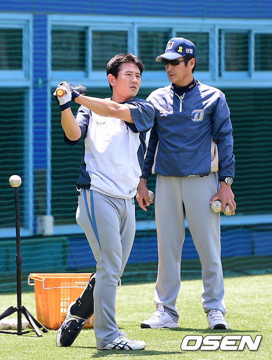 경기에 앞서 NC 손시헌이 타격 훈련을 하고 있다.