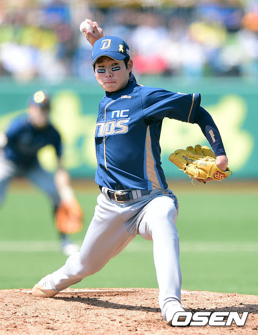 1회말 무사에서 NC 선발투수 이재학이 힘차게 공을 던지고 있다.