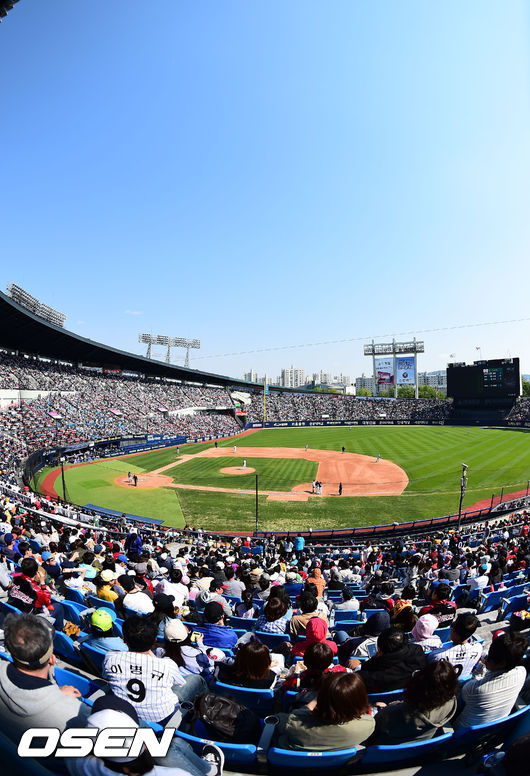 5일 오후 서울 잠실구장에서 열린 '2014 한국야쿠르트 세븐 프로야구' LG 트윈스와 두산 베어스의 경기,만원관중을 기록한 가운데 경기가 진행되고 있다