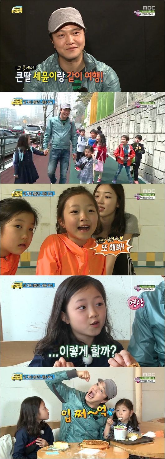 정웅인 역시 맏딸에 대한 사랑과 대견함을 표했다. 딸이 다리를 찢으며 스트레칭을 하자 그를 따라하며 호응해주고 간식을 먹는 모습만으로 행복해했다. 명품 악역으로 연기하는 모습만 보였던 정웅인의 인간적인 면모와 긍정적이고 예상보다 더 '아빠!어디가?'에 잘 어울리는 세윤의 모습은 앞으로 선보일 방송에 대해 기대하게 만들었다.