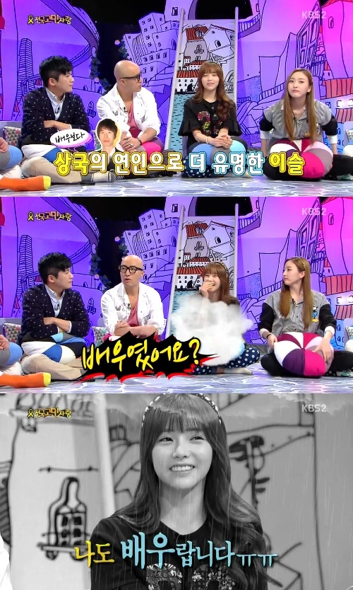그러나 홍석천은 “천이슬씨 배우였어요? 저는 그냥 직업이 양상국 여자친구인줄 알았어요”라고 짓궂게 응수해 객석을 웃음바다로 만들었다.