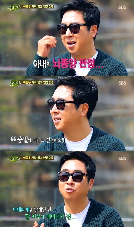 개그맨 이동우가 자신이 시력을 잃어가고 있던 때 아내의 뇌종양 소식을 들으며 "증발하고 싶었다"라고 생각했던 과거를 밝혔다.