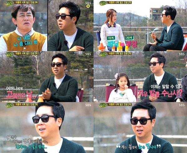 이날 방송에서 이동우는 "제 병은 망막색소병성증이다. 망막과 관련한 돌연변이다. 원인이 불명이기에 뚜렷한 해결 방법이 없다"며 담담히 앓고 있는 병 혹은 장애에 대해 밝혔다. 이어 그는 "정말 하나도 안 보이는 거냐"는 이경규의 질문에 "지난 2010년도에 실명 판정을 받았다"고 답하면서, "실명이라고 하면 다들 암흑을 떠올리는데, 저는 명암을 구분할 수 있다"면서 밝은 햇살을 느낄 수 있다는 말과 함께 행복한 미소를 지어보였다.