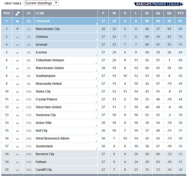2013-2014시즌 잉글랜드 프리미어리그(EPL) 순위가 점차 최종 종착지를 향하고 있다. 우승컵의 향방이 최종 라운드를 앞두고 맨체스터 시티(이하 맨시티)를 향하고 있는 것이다.