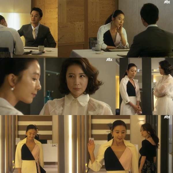 김희애는 심혜진의 말에 당황하거나 놀라는 기색이 전혀 없이 한 치의 흔들림 없이 유연하게 상황을 빠져나갔다. 심혜진은 여유 있는 표정으로 은근히 김희애를 압박하는 모습은 절로 감탄을 자아내게 했다.