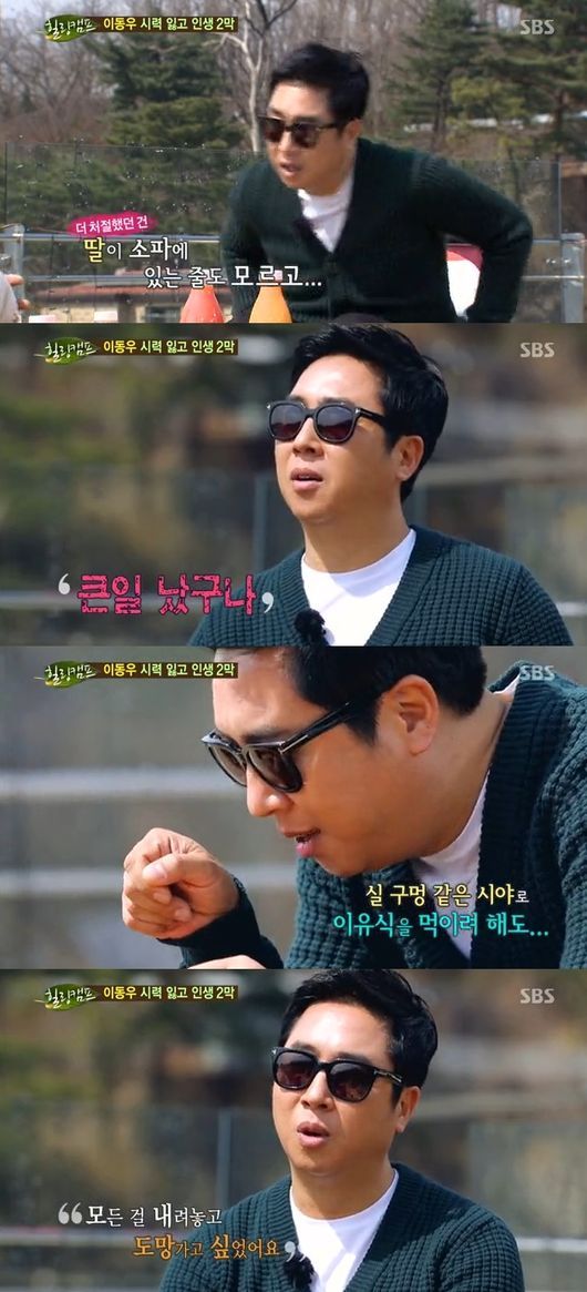 이날 이동우는 “사는 게 아니라 공기가 있어서 살아졌었던 것 같다”며 “정말 처절했던 순간들은 우리 딸아이가 소파 위에 있는 줄도 모르고 털썩 앉았을 때, 앉는 순간 ‘죽었구나’라는 느낌을 받았다. 그런 일이 한 두 번이 아니었다. 물컹하고 밟기도 일쑤였다”고 회상했다.