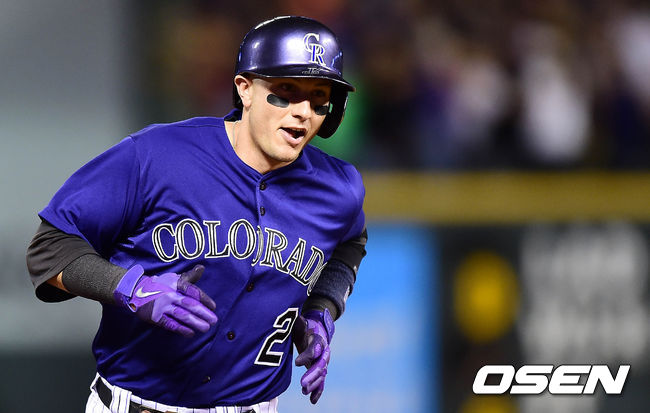 6일(이하 한국시각) 미국 콜로라도주 덴버 쿠어스 필드에서 열린 '2014 메이저리그' 콜로라도 로키스와 텍사스 레인저스의 경기 7회말 무사 2루 트로이 툴로위츠키가 투런홈런을 치고 베이스를 돌고 있다.