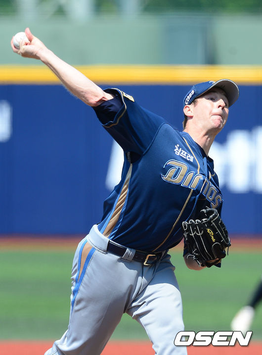6일 오후 서울 목동구장에서 열린 ‘2014 한국야쿠르트 세븐 프로야구’ 넥센 히어로즈와 NC 다이노스의 경기, NC 선발 찰리가 힘차게 공을 뿌리고 있다.
