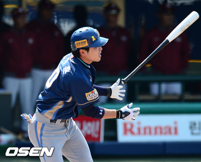 6일 오후 서울 목동구장에서 열린 ‘2014 한국야쿠르트 세븐 프로야구’ 넥센 히어로즈와 NC 다이노스의 경기, 2회초 1사 주자 만루 NC 지석훈이 좌익수 뒤 선취 2타점 적시타를 날리고 있다.