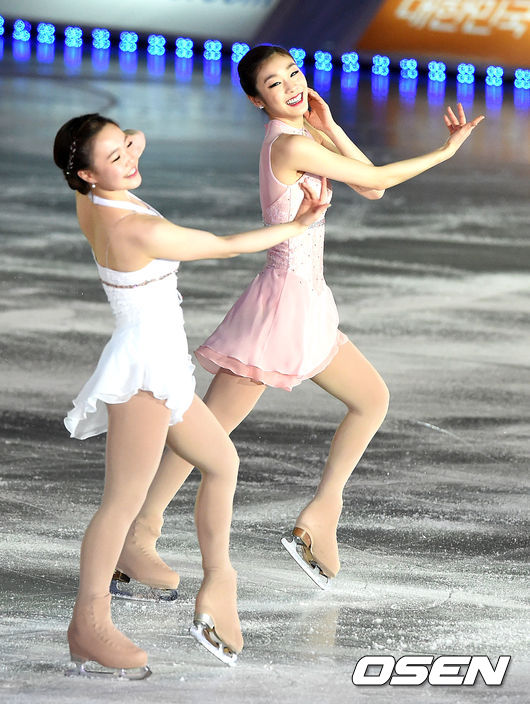 김연아가 박소연과 피날레 무대를 선보이고 있다.