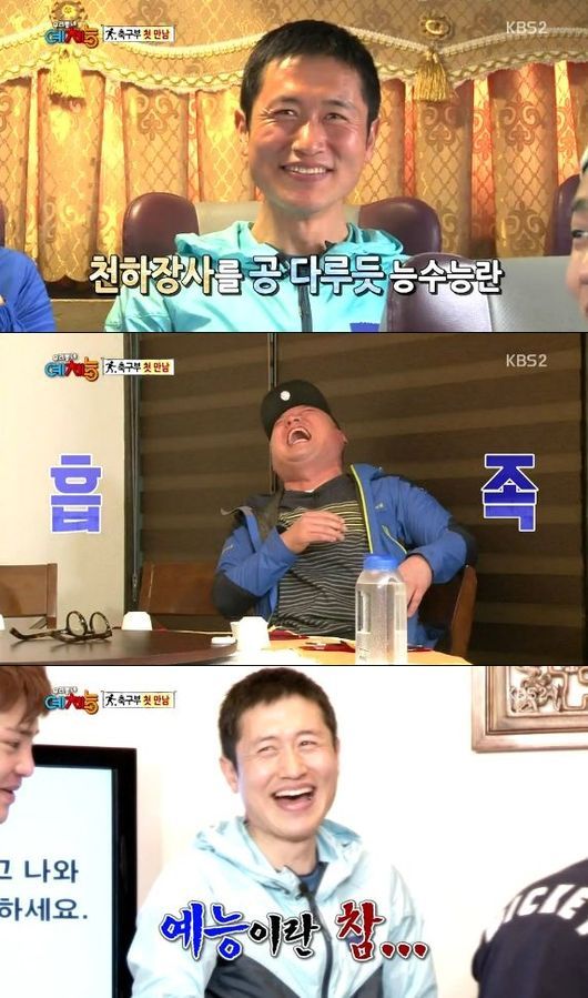 이에 이영표는 "그런데 골기퍼가 주장을 하는 경우가 많다. 이것저것 지시를 해야하기 때문"이라며 골기퍼로 유력한 강호동의 마음을 들었다놨다해 웃음을 선사했다.